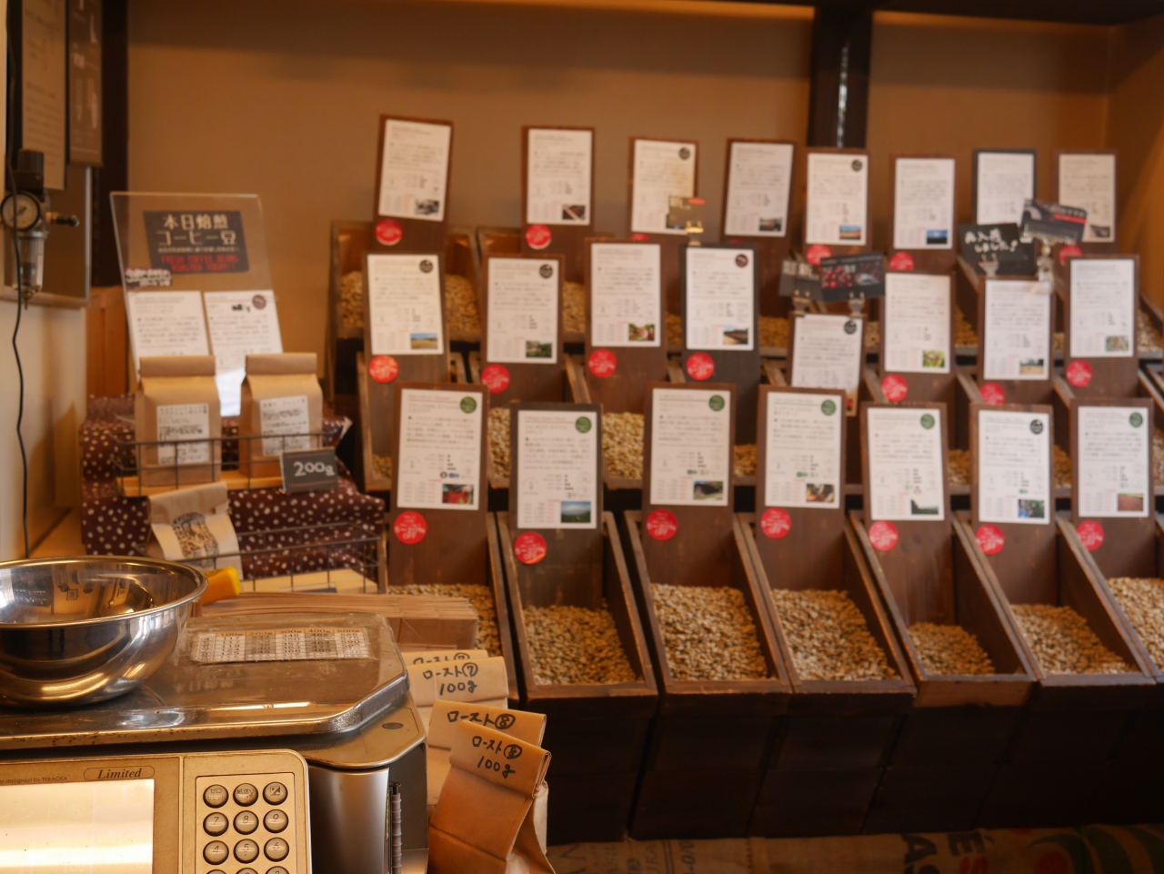 1階でコーヒー豆を購入。豆を選ぶとその場で焙煎しパッキングしてもらえます。20分ほどかかりましたが、美味しいコーヒーをいただきながらのんびりできました。- 旅行時期