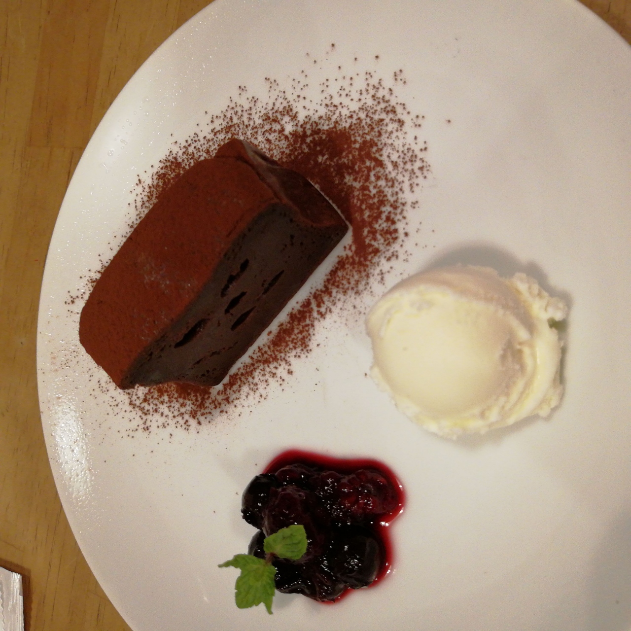 「やまゆりポークのキーマカレー」(800円)、「やまゆりポークのカツカレー」(1,100円)、「豆腐のガトーショコラ」(400円)をふたりでシェアしました。