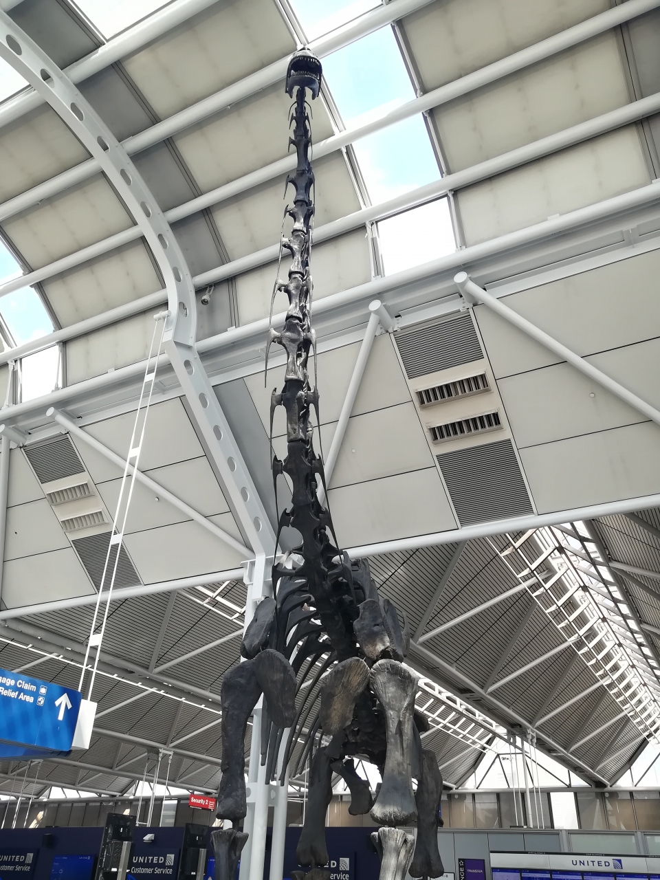 空港内に大きな恐竜の化石が展示されています。シカゴのフィールド博物館で展示されている化石のレプリカだそうです。