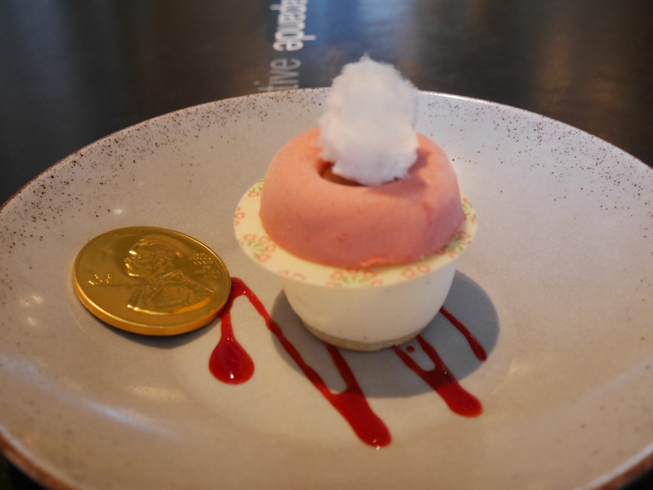 看板メニューはノーベル賞受賞式の晩餐会で出されているのと同じアイスクリームです。ノーベル賞メダルチョコレートも1枚ついて価格は110krとお高めですが、話のネタにはなります。