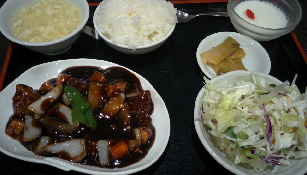 中国黒酢風酢豚は黒酢がすごく効いています。「中国黒酢風」の意味がイマイチよくわかりませんが(黒酢ではない?それとも中国の黒酢ではない?)、美味しかったです。- 旅行時期