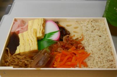 今回はお弁当屋さんを利用。鯛めしが欲しかったのですが残念ながら売り切れだったので、五目ちらし寿しを購入しました。具は鯛そぼろ、レンコン、卵焼きなどです。全体的に甘めな味付けでした。- 旅行時期