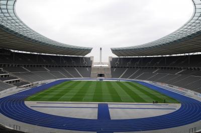 1936年のベルリンオリンピックの為にナチスドイツが造り上げたスタジアムです。外装やスタジアム内の通路は石造りで、どっしりとした威厳のある外観です。