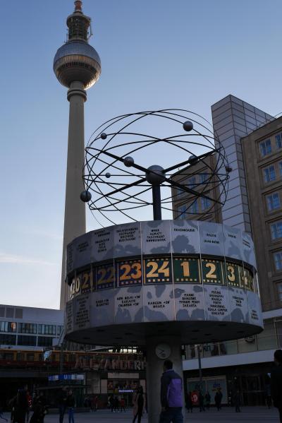 世界中の時刻が分かる、旧東ドイツ時代の1969年に設置されたアナログ時計。
