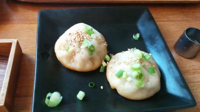 お粥とサラダと煮物、薬味が付いたお粥セットとドリンク、焼き小籠包とレアチーズ風豆腐ケーキをいただきました。