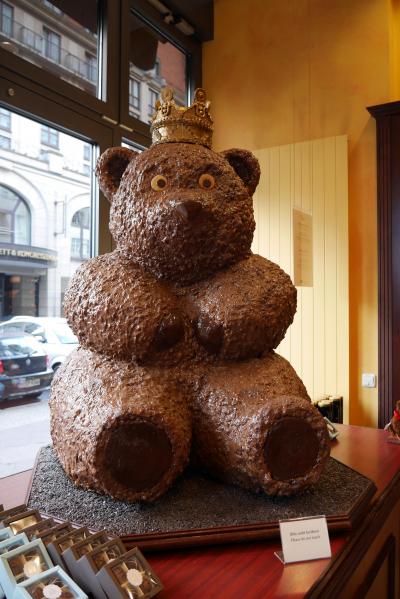 チョコレートで作った大きなクマや飛行機やらテレビ塔などが飾られています。