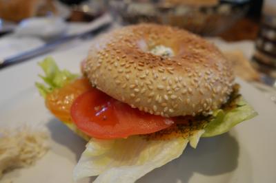 私は「ニューヨーカーの朝食」(サーモン、クリームチーズ、トマト、セサミベーグル)(EUR8.3)、夫は「パリジャンの朝食」(クロワッサンなどパン3個)(EUR6.5)をいただきました。