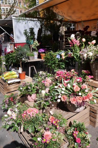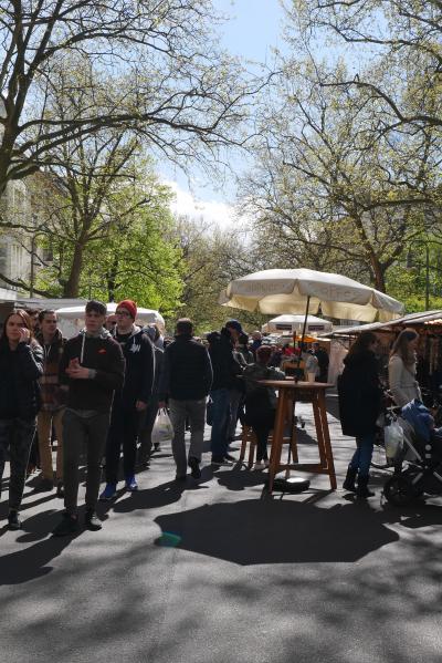 コルヴィッツ広場で毎週木曜にエコマーケット、毎週土曜日にウィークマーケットが開かれます。