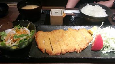 ランチの「チキンカツ定食」(850円)と「牛ステーキ丼」(980円)をふたりでシェアしました。