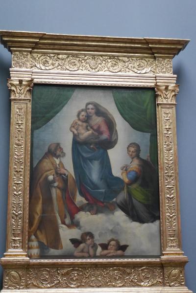 館内は広く、ラファエロの「システィーナのマドンナ」をはじめ、レンブラント、フェルメールなどの名画が多く展示されています。