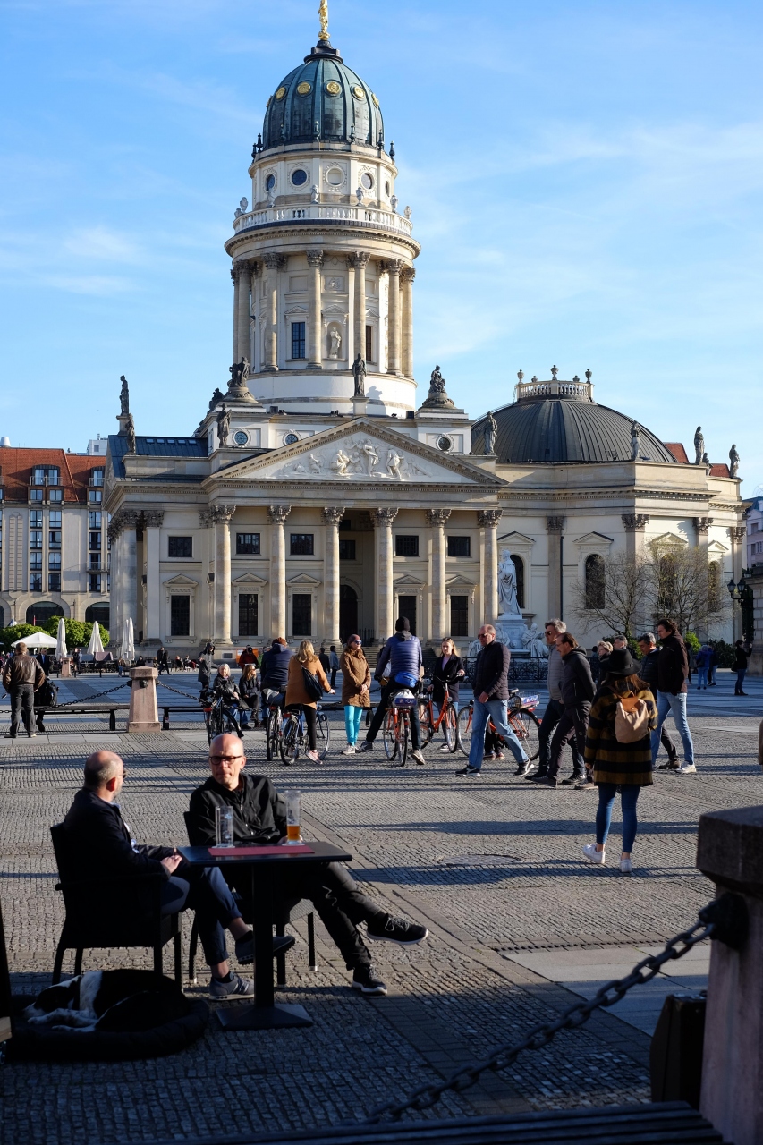 広場中心にコンツェルトハウスが建ち、北側にフランスドーム、南側にドイツドームという18世紀の教会が向かい合っているクラシックな雰囲気の広場です。