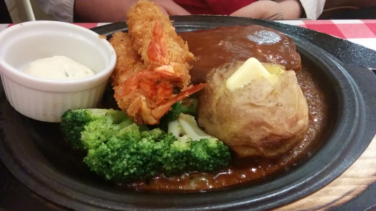 私はオムライスを、夫はハンバーグ&海老フライ を頂きました。