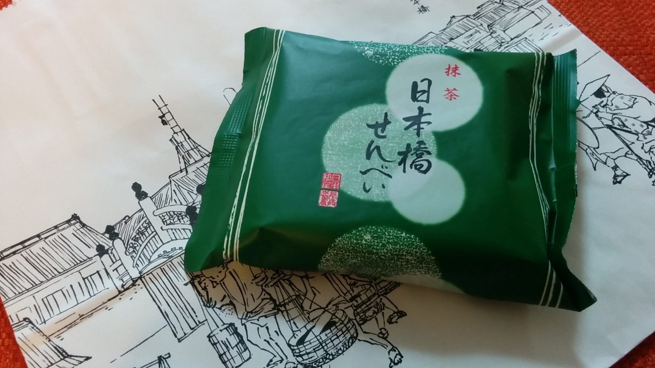 今回は「日本橋せんべい」の抹茶を購入。日本橋せんべいも定番商品ですが、この抹茶味は季節限定です。