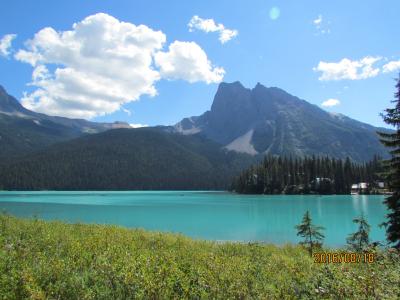 そしてエメラルドレイクに到着しました。湖の色はモレインレイクやレイクル...