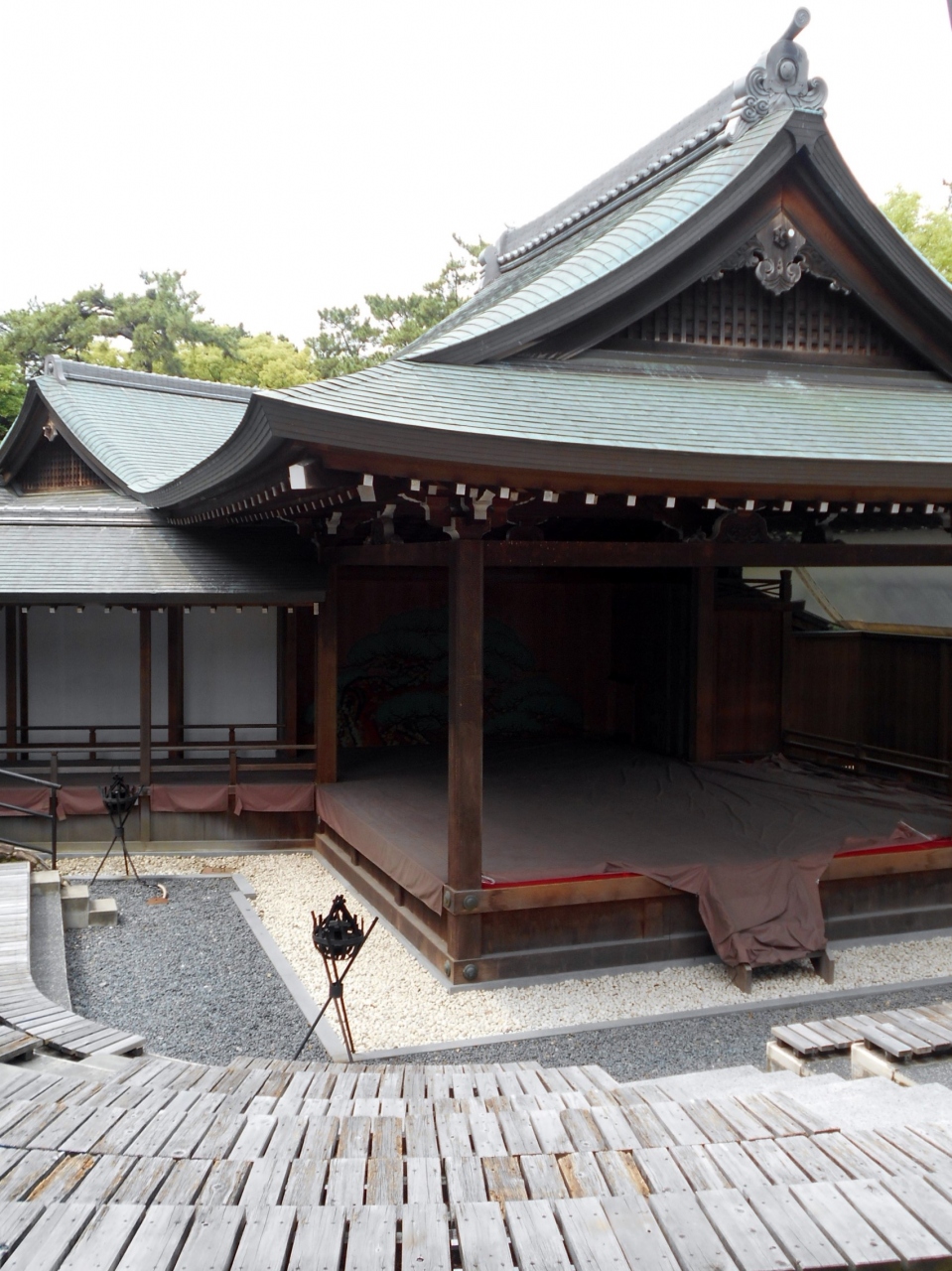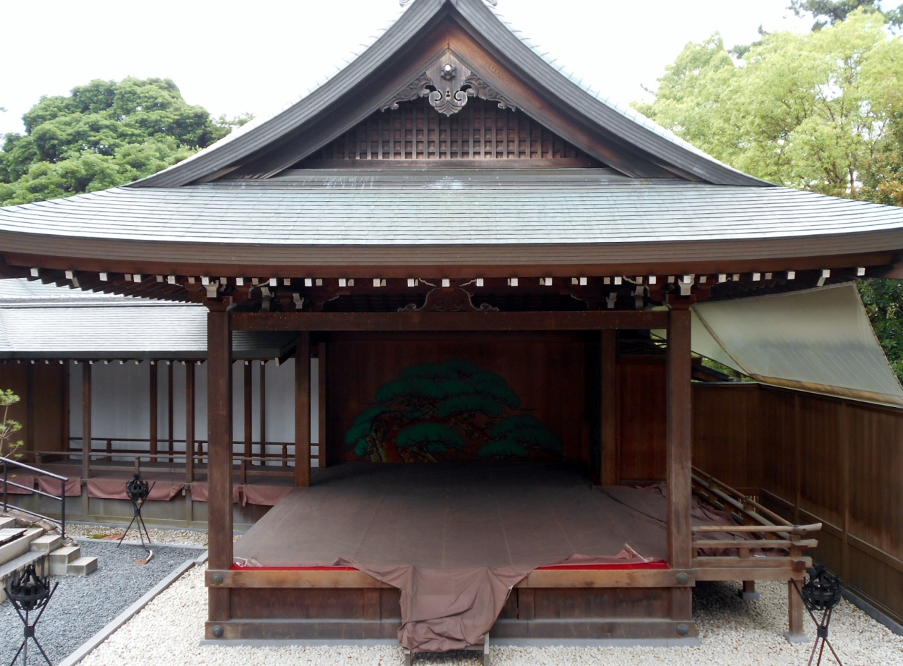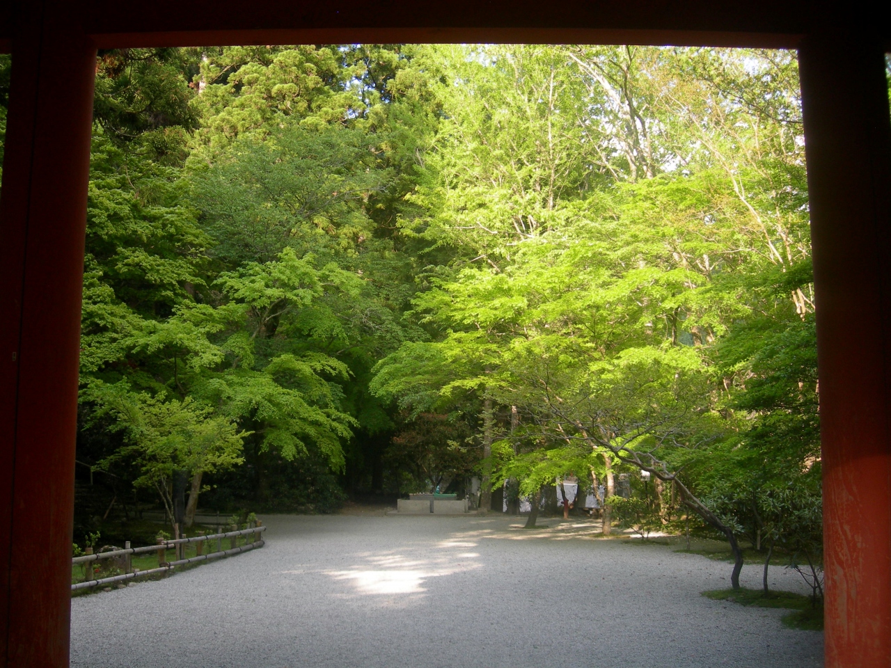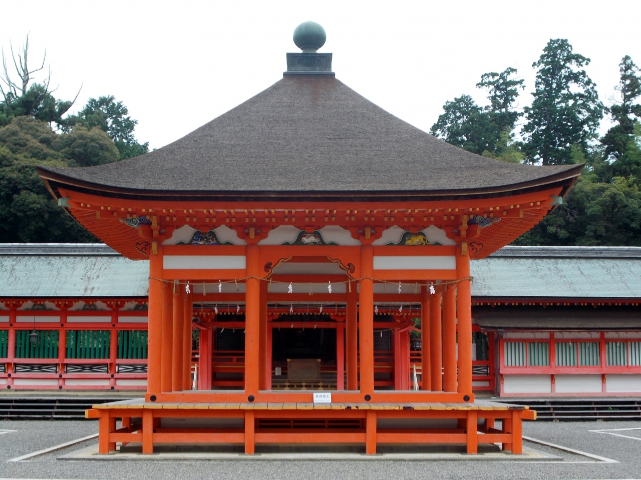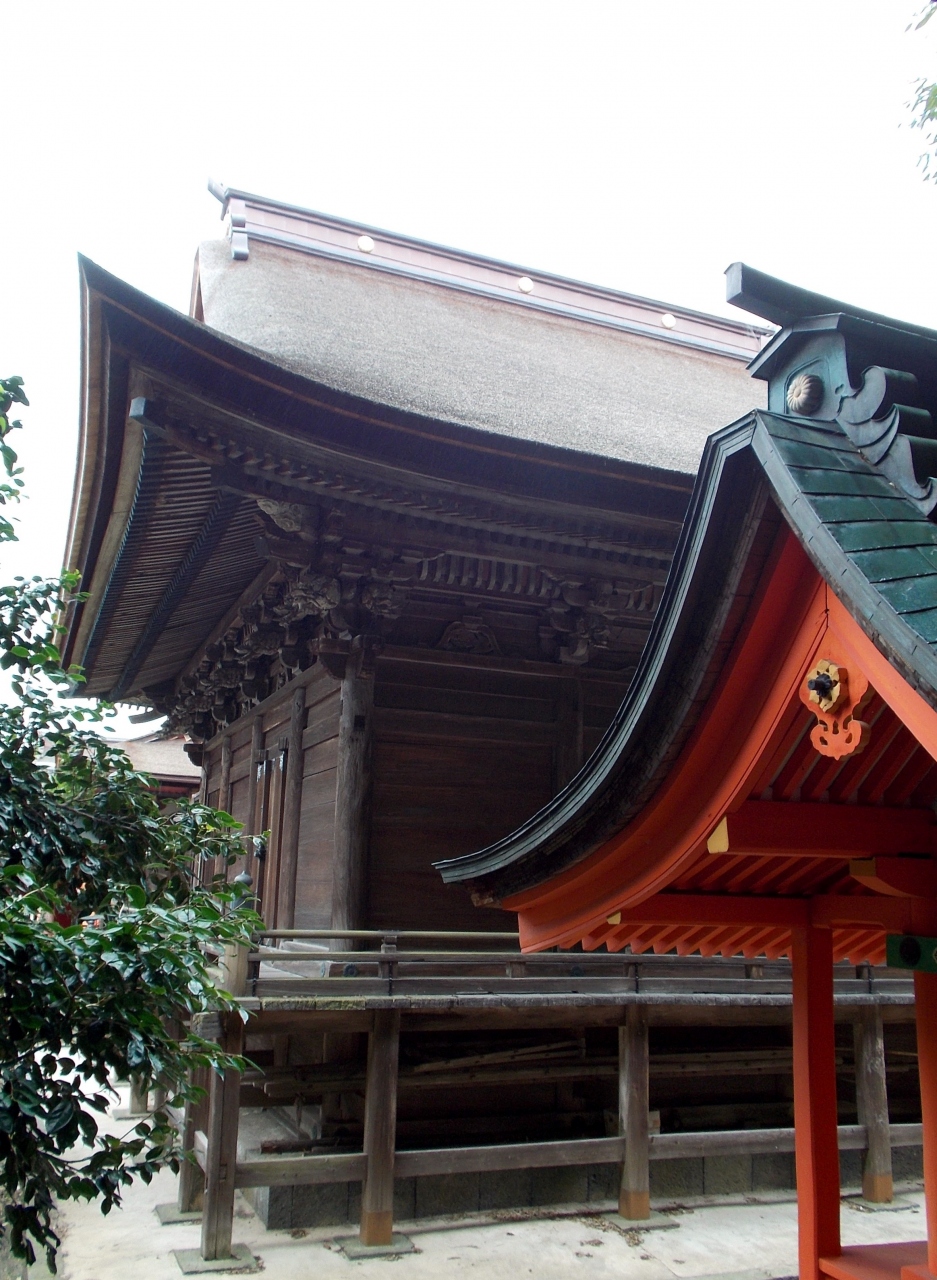 高舞殿・回廊・拝殿の赤と神輿舎・神官廊の茶の織りなす景観にすっかりとりこになったようでした。
