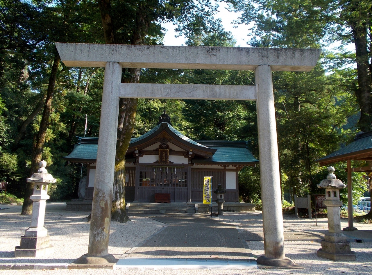 家族で香嵐渓に青もみじ鑑賞と巴川での水遊びをする前に、参拝した神社です。