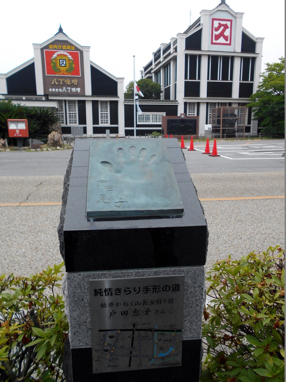 NHK連続テレビ小説「純情きらり」の主要舞台となった岡崎市の八丁蔵通り・きらら通り・岡崎公園内に主要キャストの手形のプレートがあります。