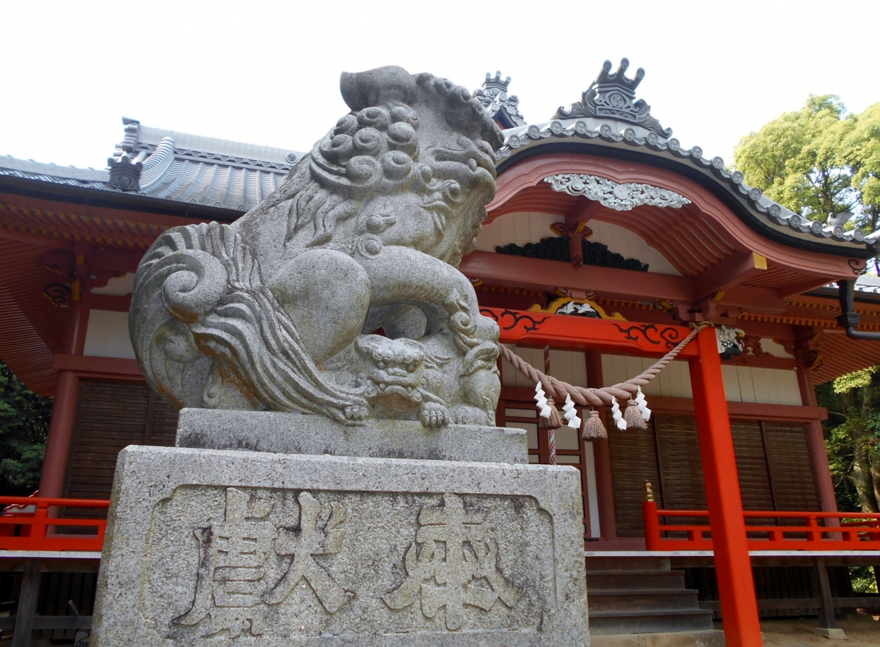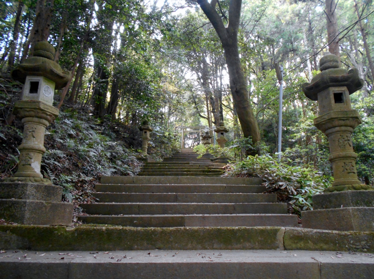 石燈籠の立ち並ぶ石段参道を登りきると高台に出て、右に折れて石段を少し上り、慶取門をぬけると視界が急に開けます。立派な社殿で参拝しましょう。