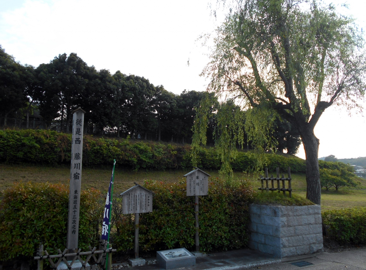 松並木終点から東へ折り返し、十王道・西棒鼻・伝誓寺クスノキ・藤川宿記念館(脇本陣跡)・本陣跡・粟生人形工房・明星院生垣山門・東棒鼻と一通り見どころはおさえ、最後に真新しい本陣跡のベンチで一休みをして家路に着きました。