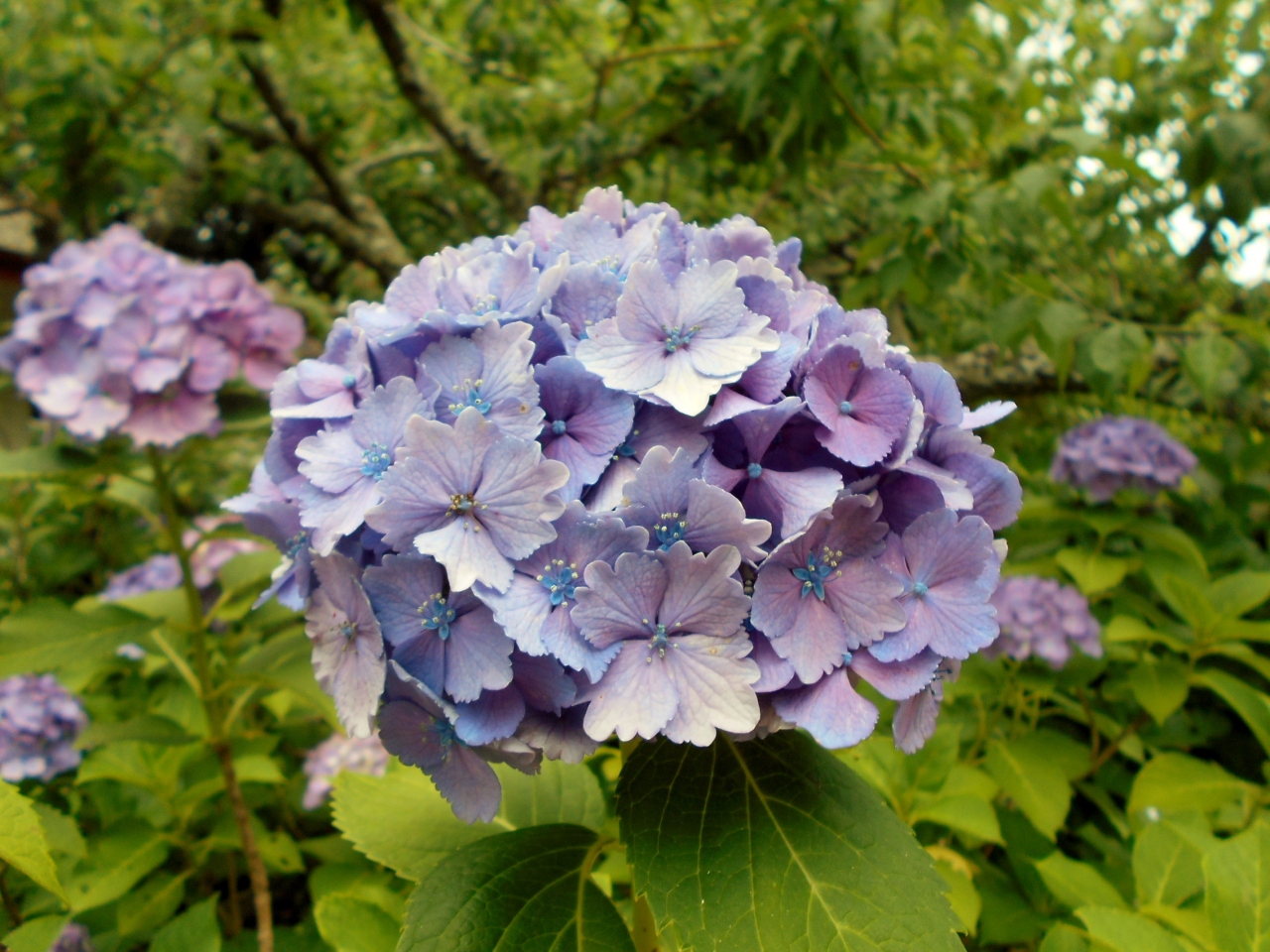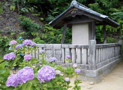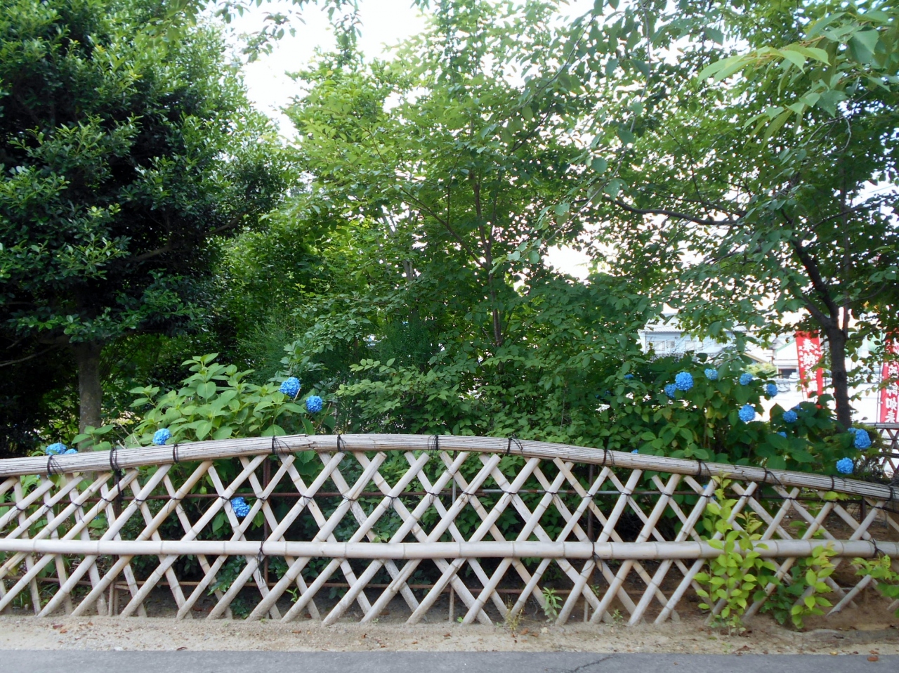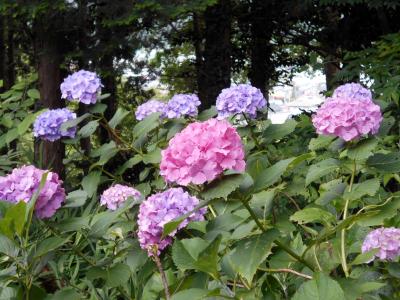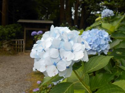 境内は本堂・薬師堂・鐘楼があり、参道の垣根に咲くアジサイがきれいでした。
