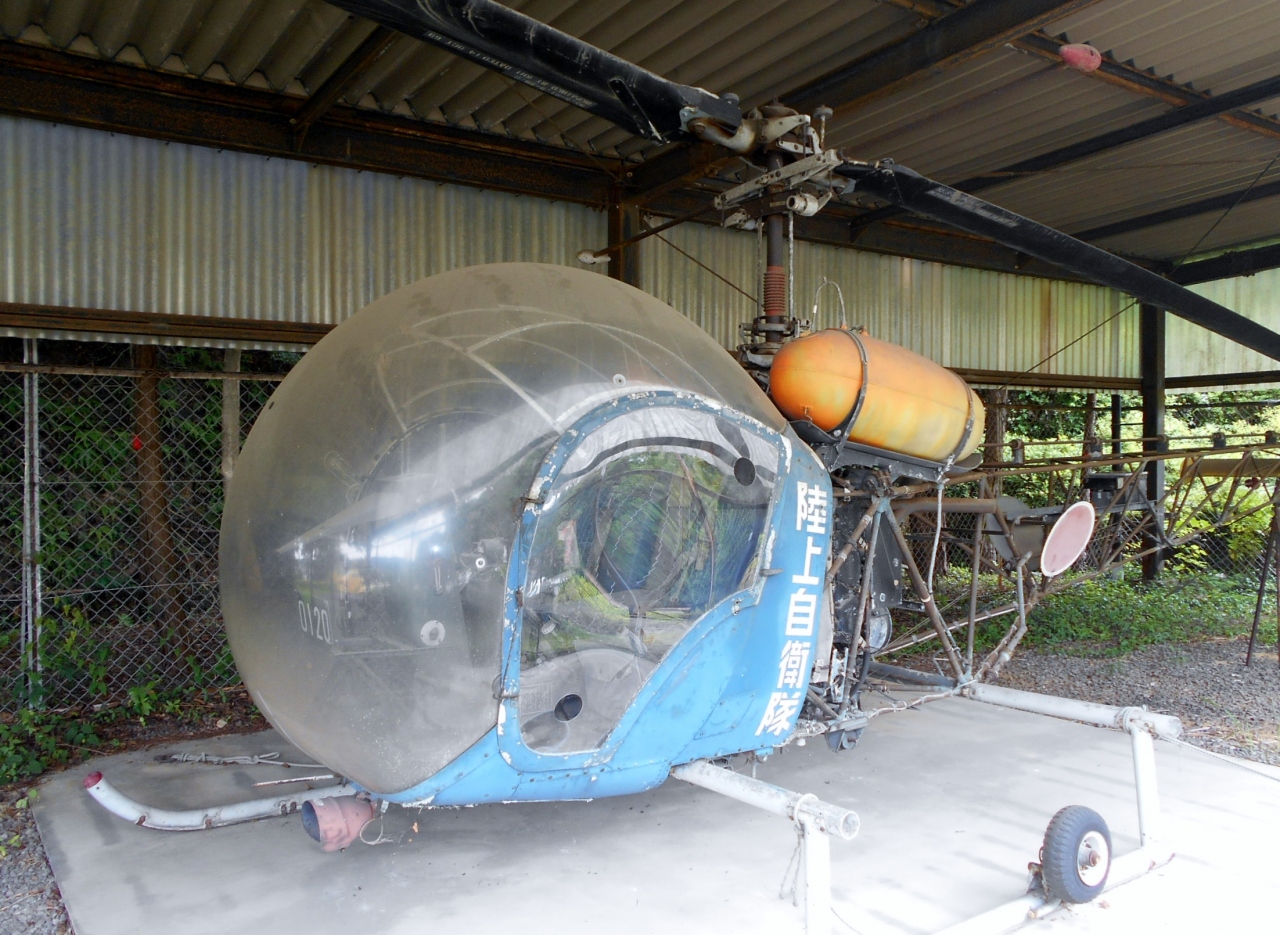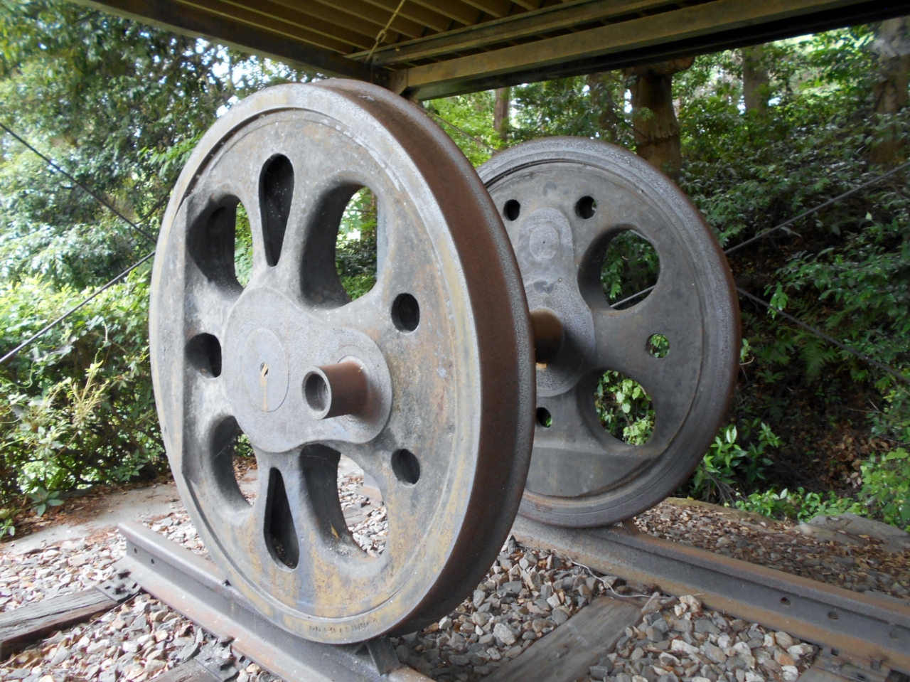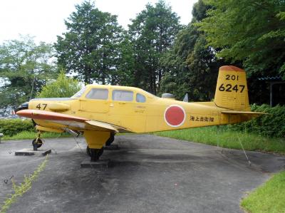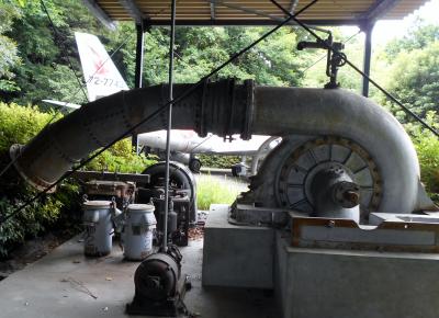資料館前に停車して、まず目を引いたのが黄色の軽飛行機。海上自衛隊訓練用に実際使われていたそうです。そこから丘の上を随所に屋外展示がありました。D-51蒸気機関車の車輪・ヘリコプター・航空自衛隊の旭光F16ジェット機・菱池排水ポンプ・潜水艦おやしおのスクリューなど子供はもちろんのこと、親である私まで興奮しました。