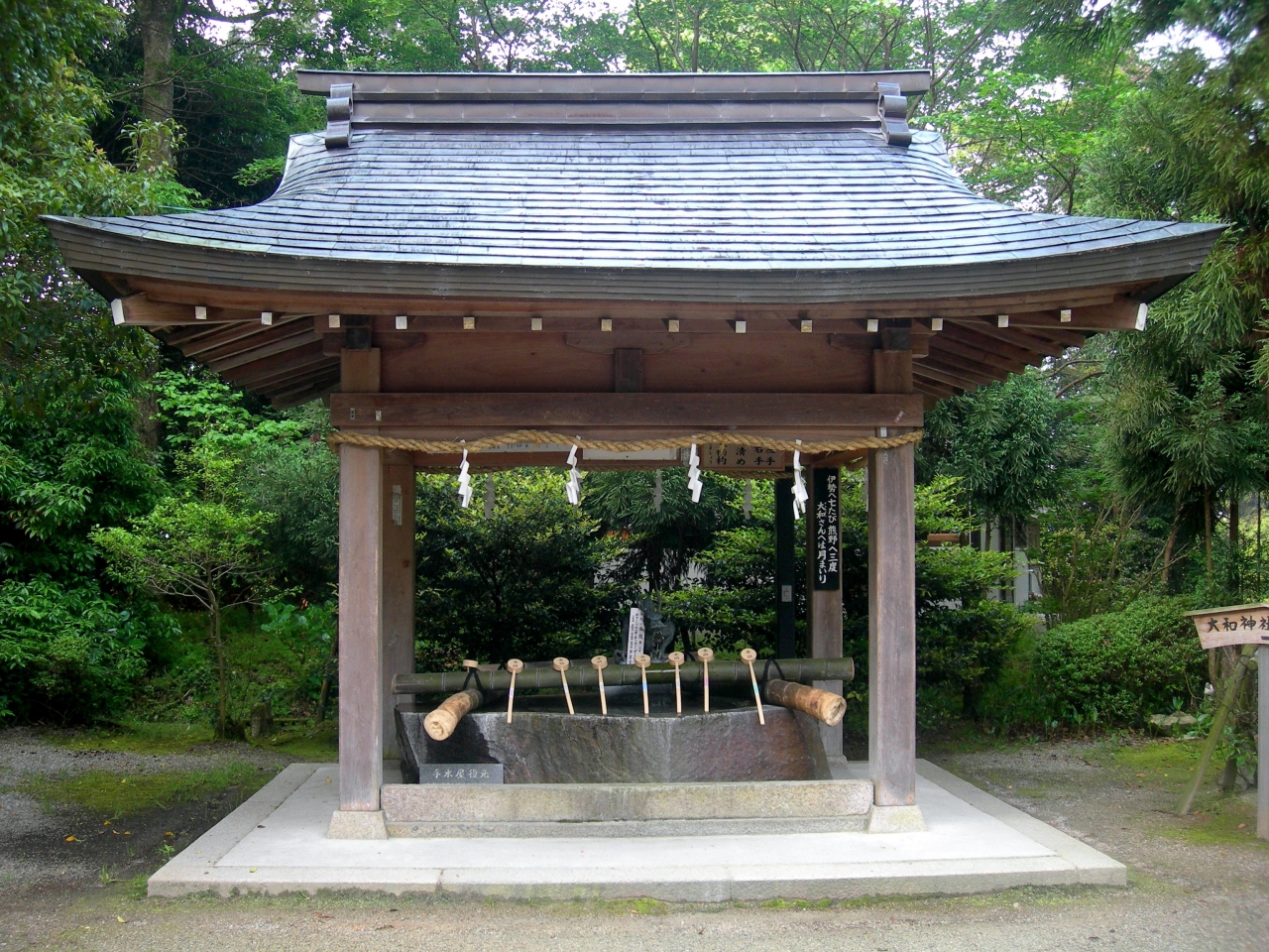 - JR三輪駅より拝殿まで徒歩10分、山の辺の道を20分ほど北上。