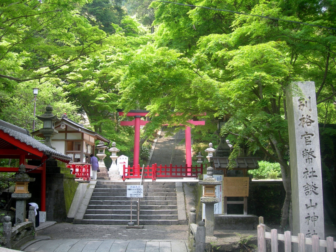 中大兄皇子(後の天智天皇)と中臣鎌足が大化の改新の談合を多武峰で行ったことから「談らい山(かたらい山)」と呼ばれ、今の社名に至っています。
