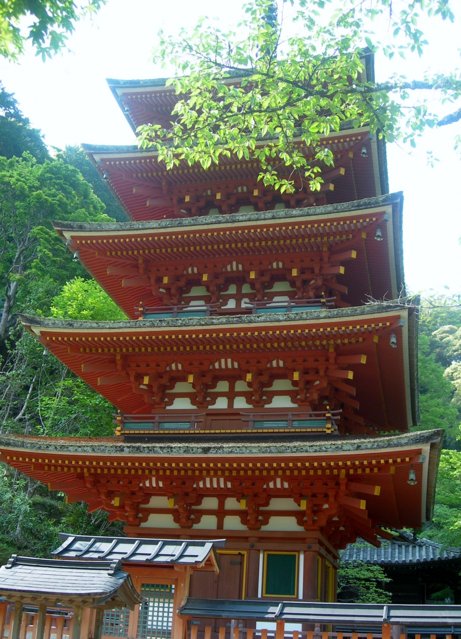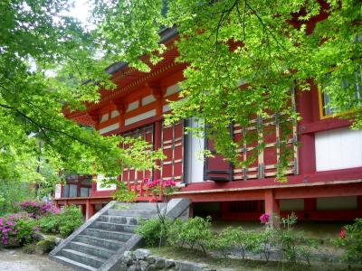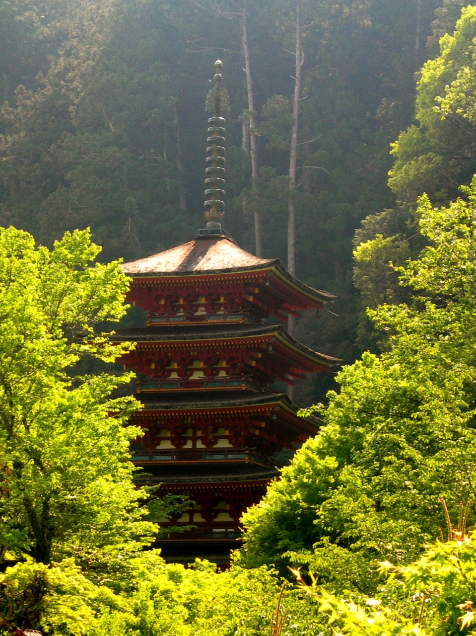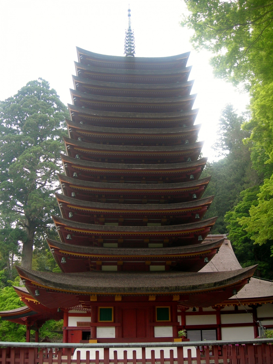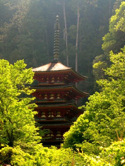 タイトルに記したとおり、鑑賞の楽しみ方はこの2つでしょう。私が訪れたのは5月の新緑の時期でしたので、青もみじの眩しい緑と鮮紅色の五重塔のコントラストがとても美しかったのを今でも鮮明に覚えています。- 旅行時期