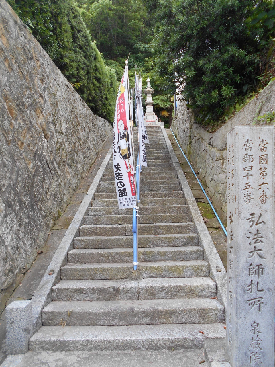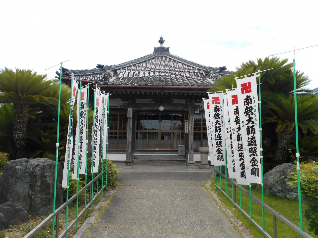 石段参道を上ると参道が右に折れ、正面に本堂・右手に弘法堂があります。