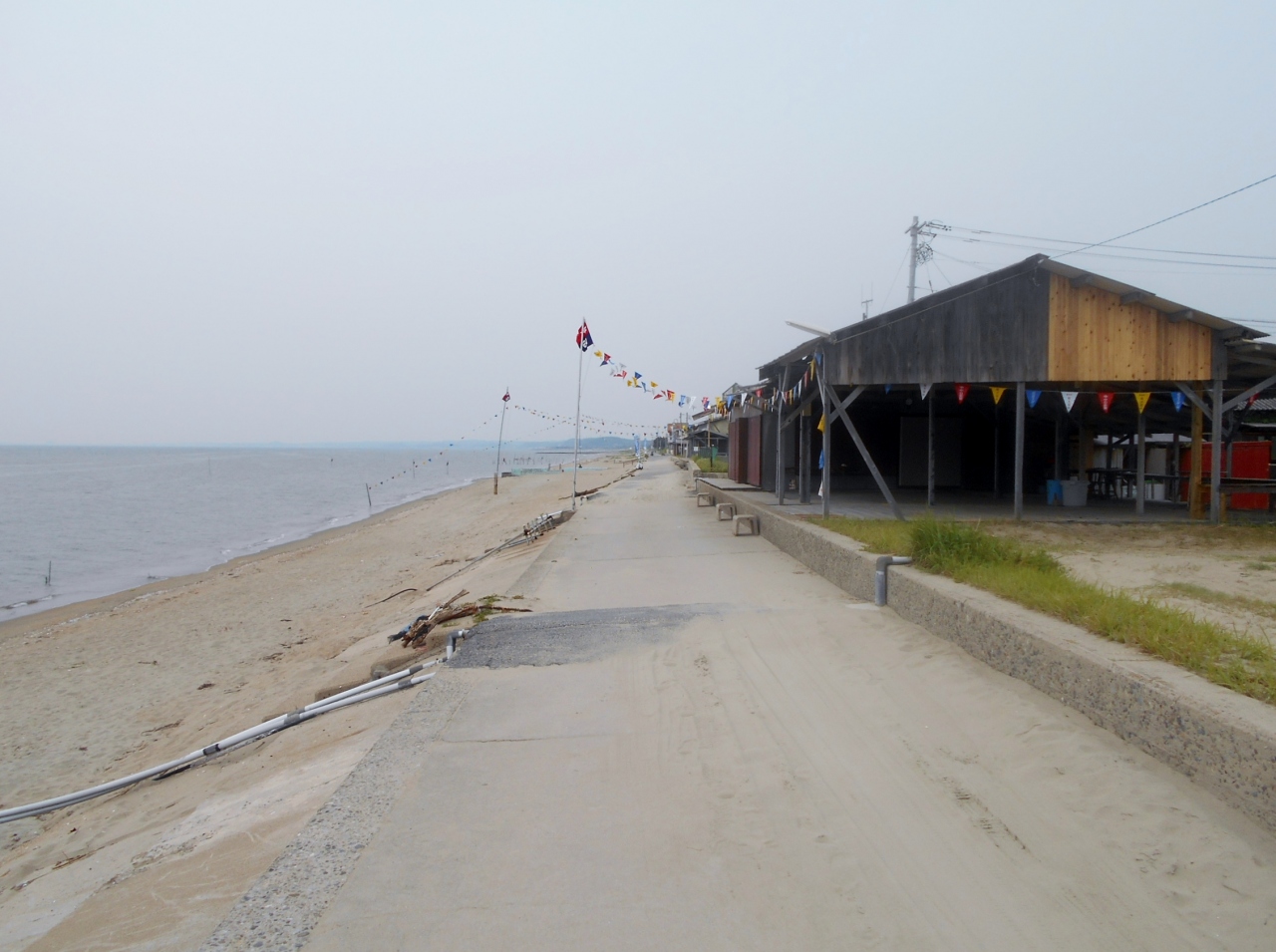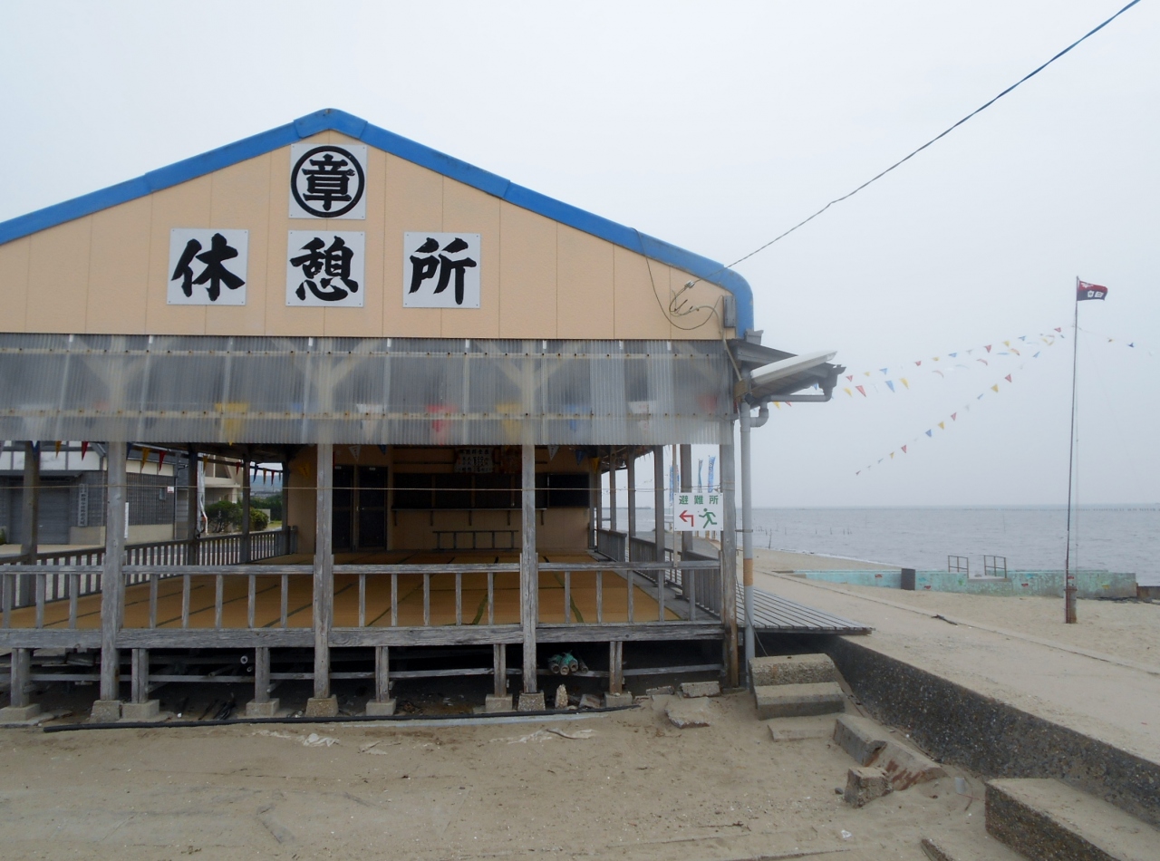 国道247号線に面しており、すぐ眼前が山海海水浴場です。