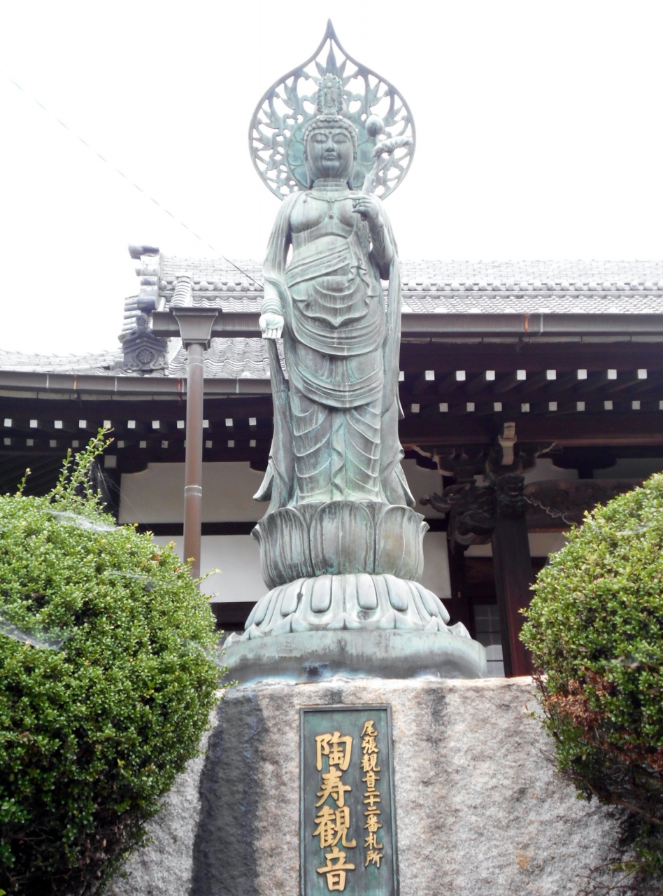 本堂手前の陶寿観音立像・慈母観音立像・十三重石塔が見どころでしょうか。