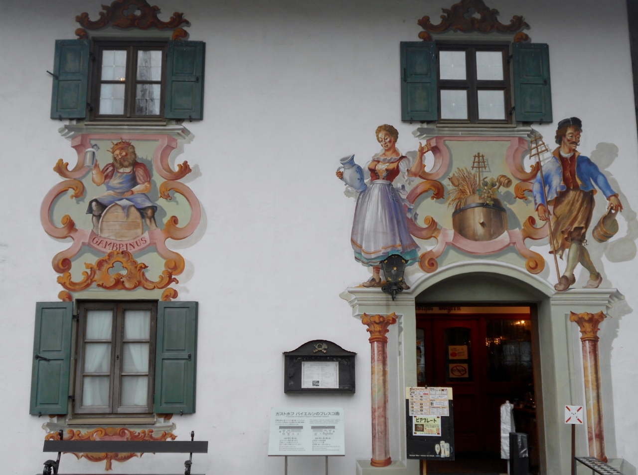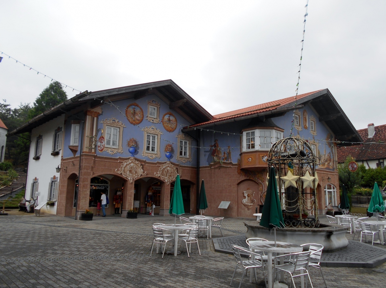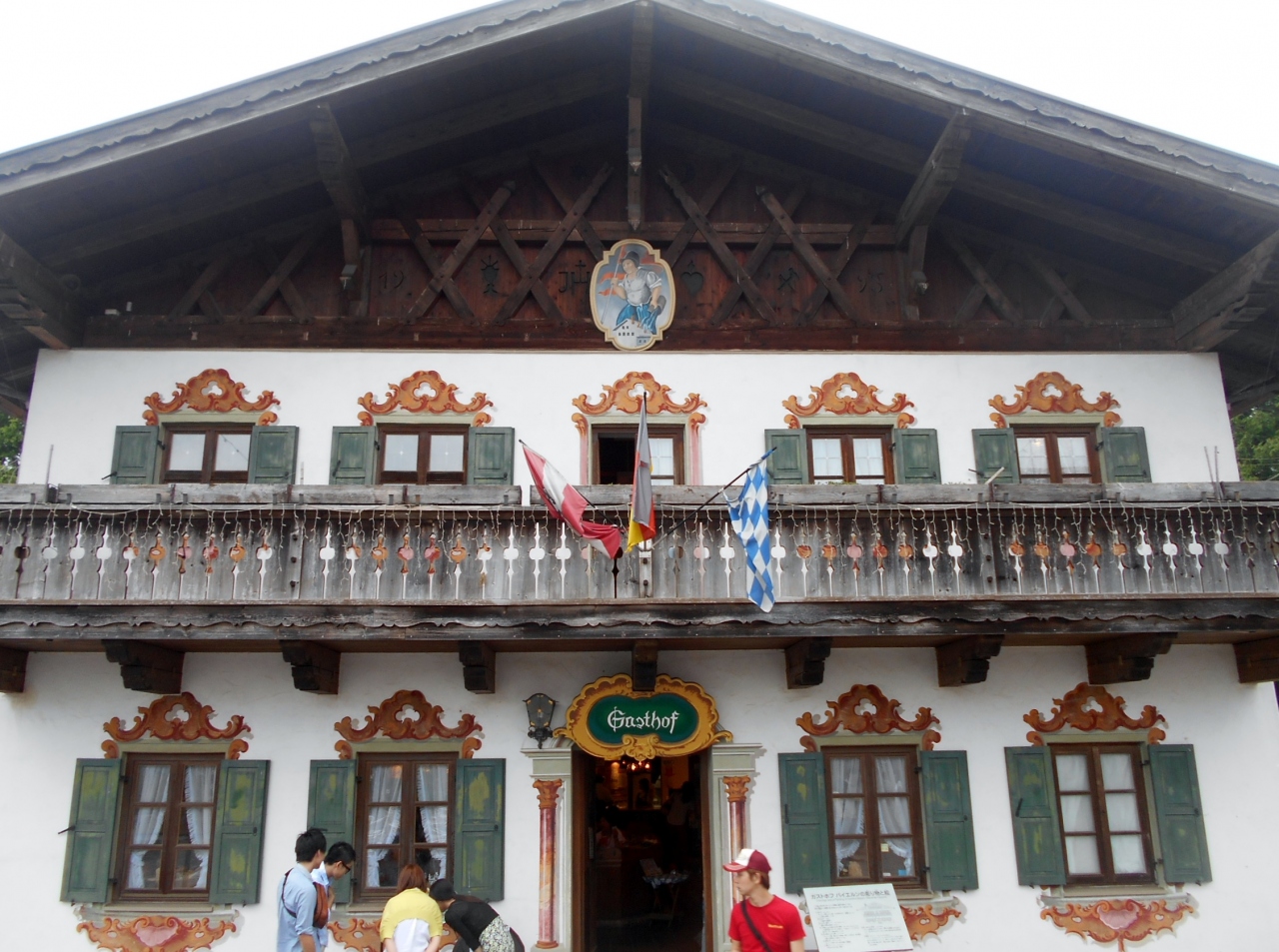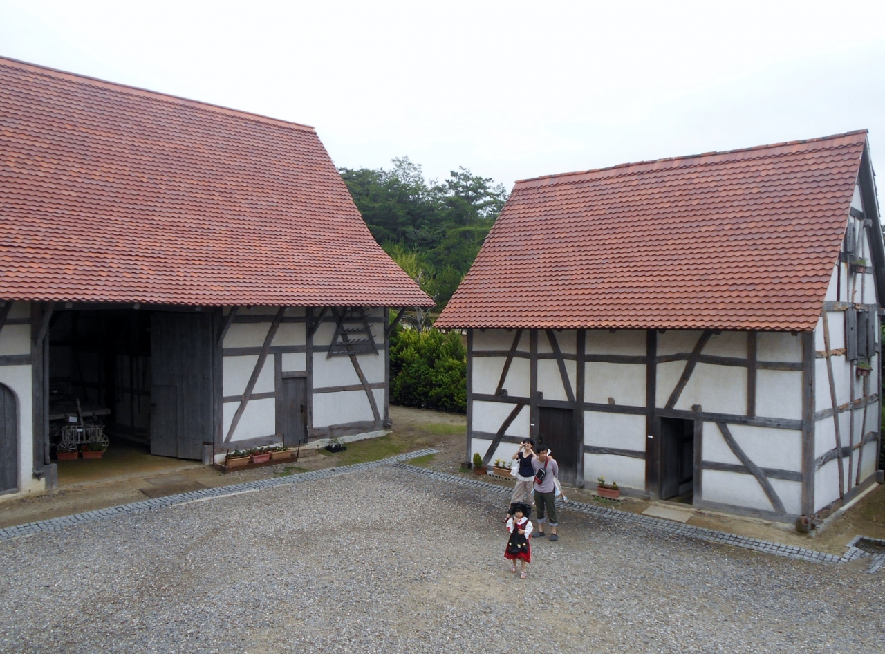 愛知県犬山市リトルワールドのゾーン?、フランス アルザス地方の家の左手にあります。ここは見どころ満載で、家内と子供たちが真っ先に向かった聖ゲオルグ礼拝堂の他、メルヘンバルト・ガストホフバイエルンという名の2棟の民家に描かれている色鮮やかなフレスコ画が目を引きます。