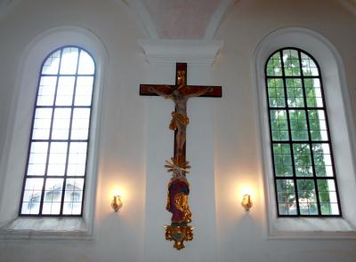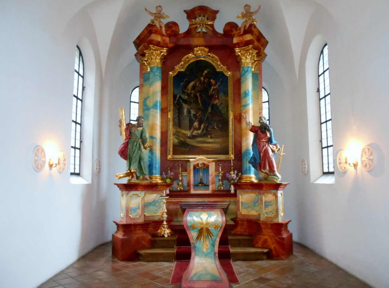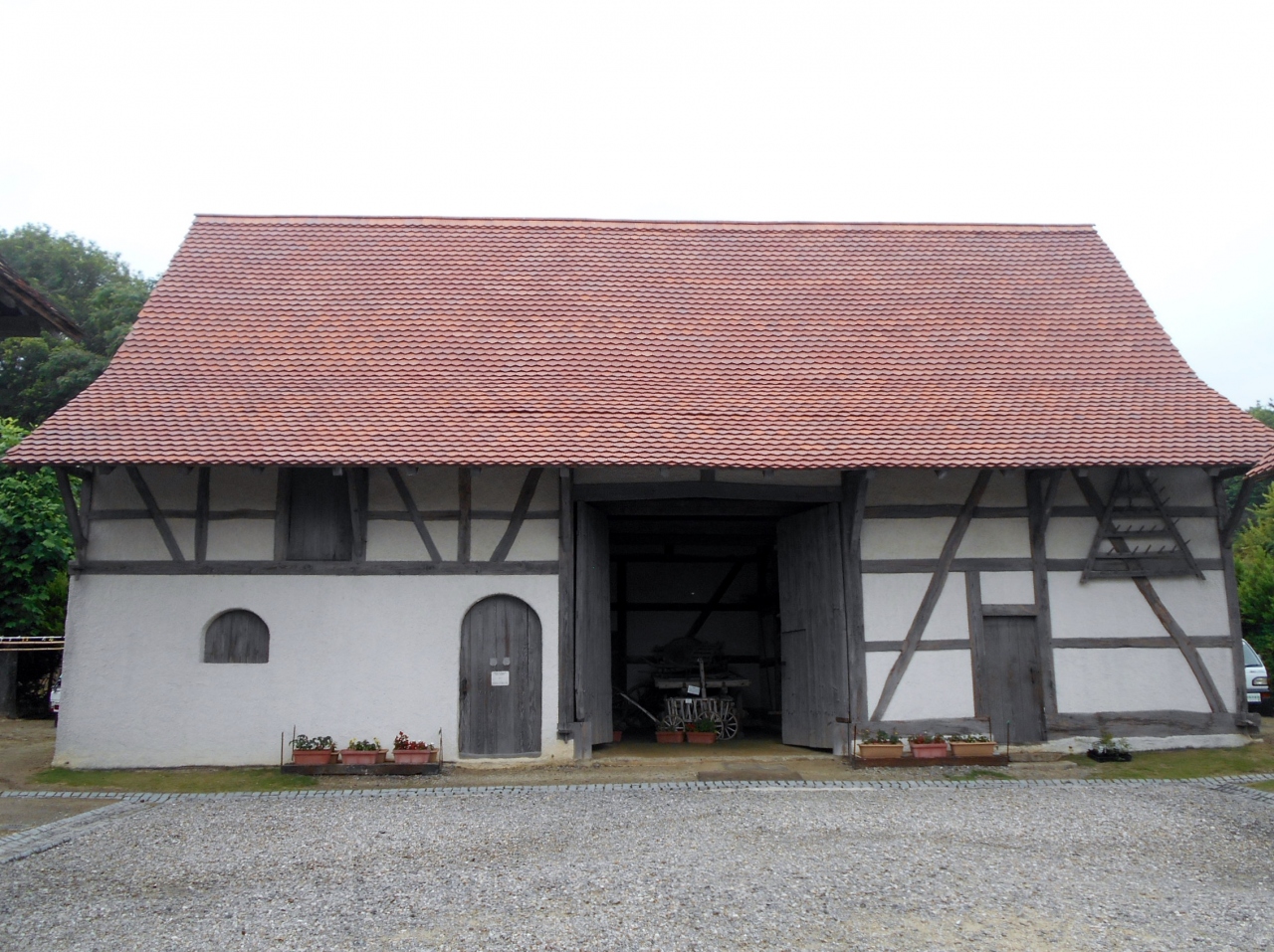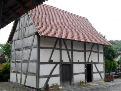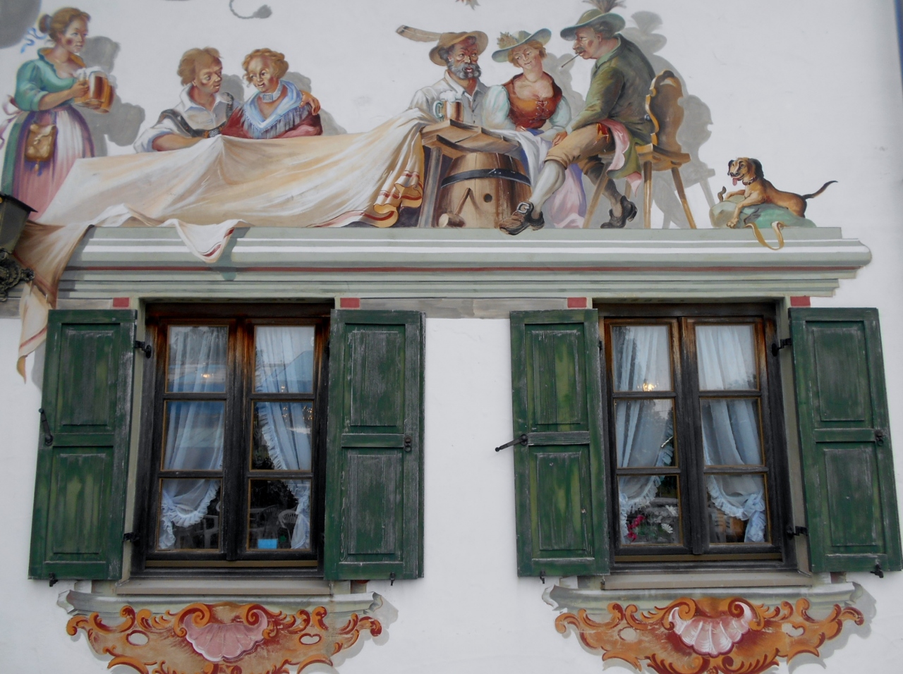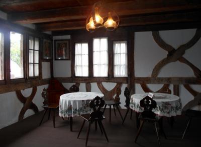 愛知県犬山市リトルワールドのゾーン?、フランス アルザス地方の家の左手にあります。ここは見どころ満載で、家内と子供たちが真っ先に向かった聖ゲオルグ礼拝堂の他、メルヘンバルト・ガストホフバイエルンという名の2棟の民家に描かれている色鮮やかなフレスコ画が目を引きます。