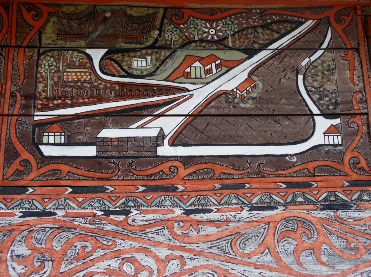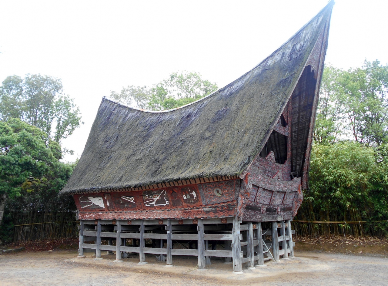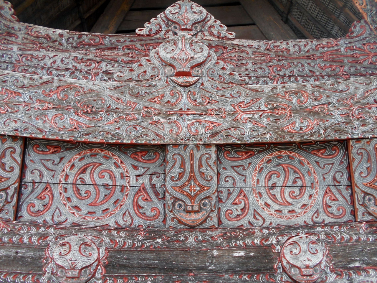 建築物の外観しか観ることはできませんが、船の形のような大きな高床式の家は見事です。正面の壁・横壁に色々な装飾画・絵画が描かれているのでじっくり観たいところ。