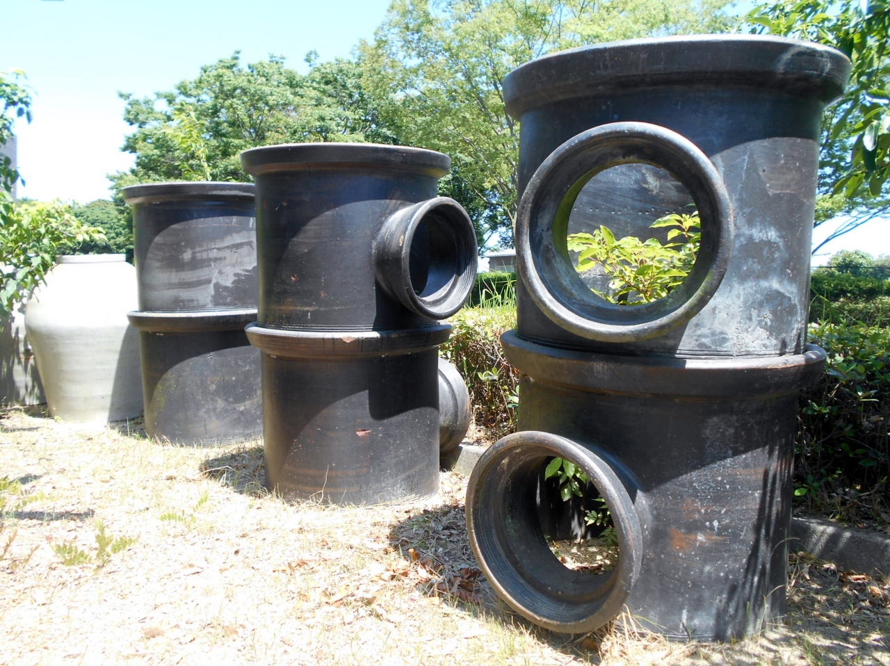 資料館は館内の展示も良いですが、屋外のオブジェみたいにあちこちに配されてる瓶や土管も見どころですよ。資料館左手には1970年大阪万博で実際に出品された陶製ベンチがありました。- 旅行時期
