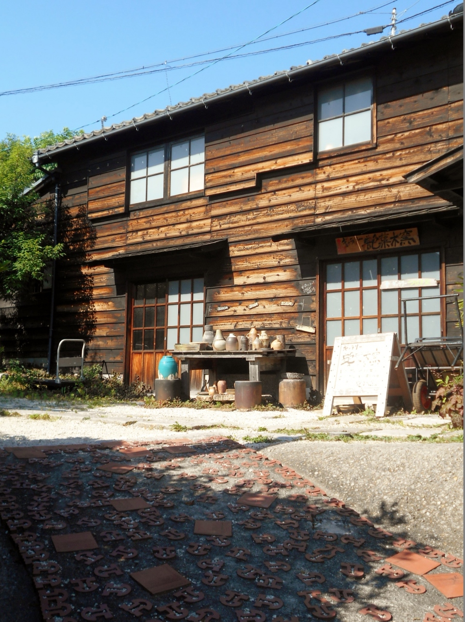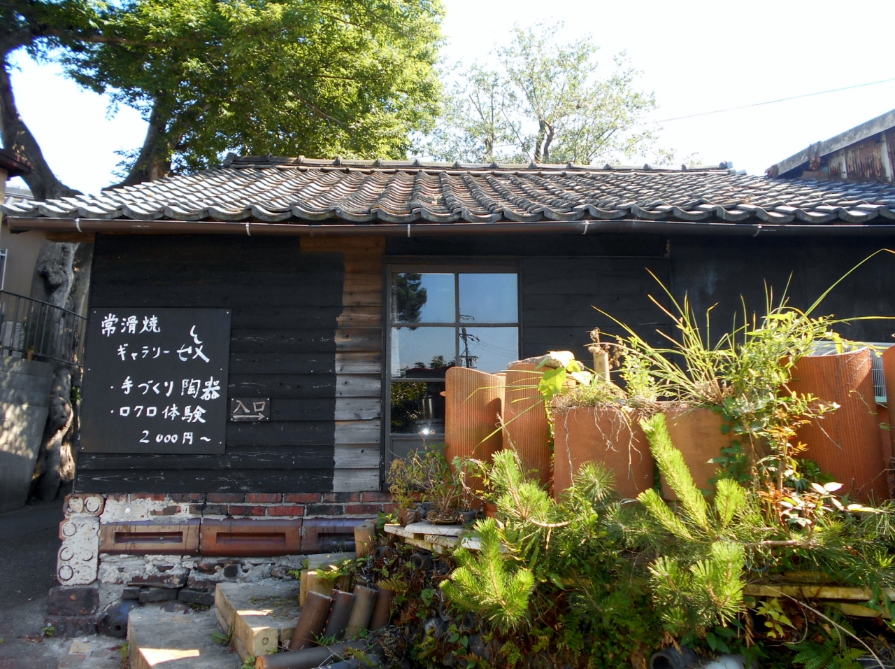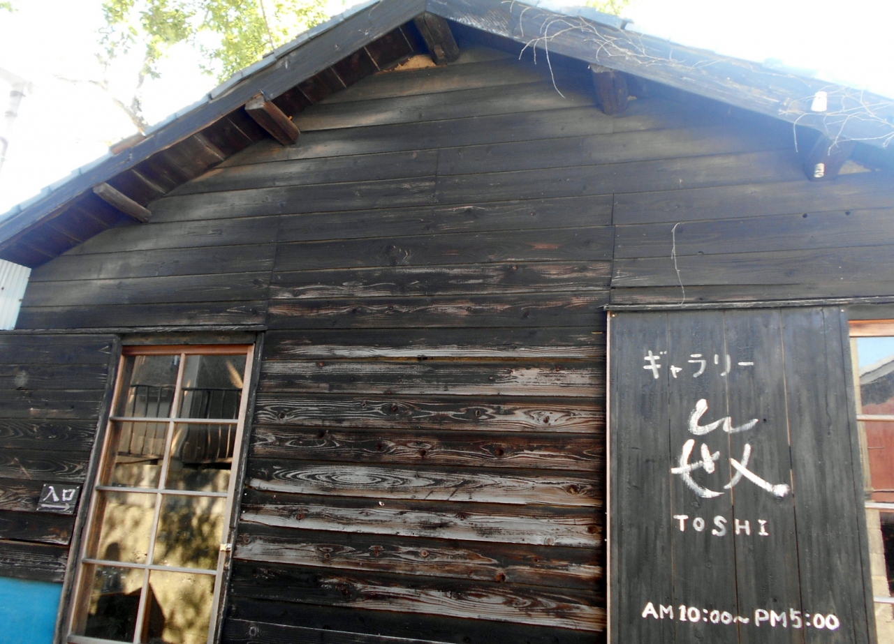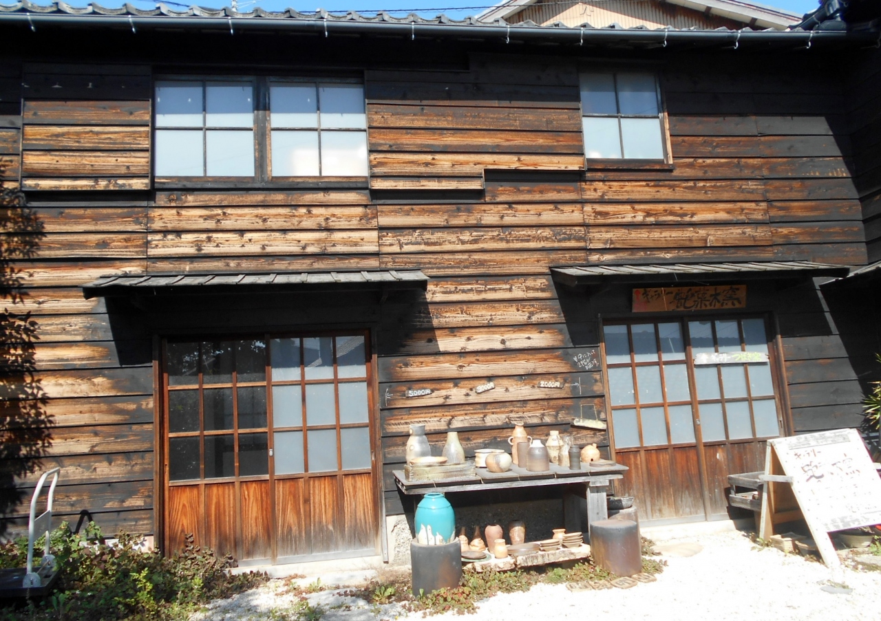 陶磁器会館過ぎを左折し、やきもの散歩道を看板に従って進むと黒塗板の古ぼけた民家のような建物がありますが、そこがギャラリー敏さんです。