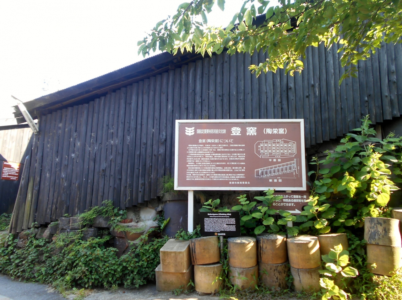やきもの散歩道のちょうど半分くらいのところに「登窯広場」があり、少し先に進むと国の重要有形民俗文化財に指定されている登窯があります。土管坂同様、ここは見逃せないですよ。