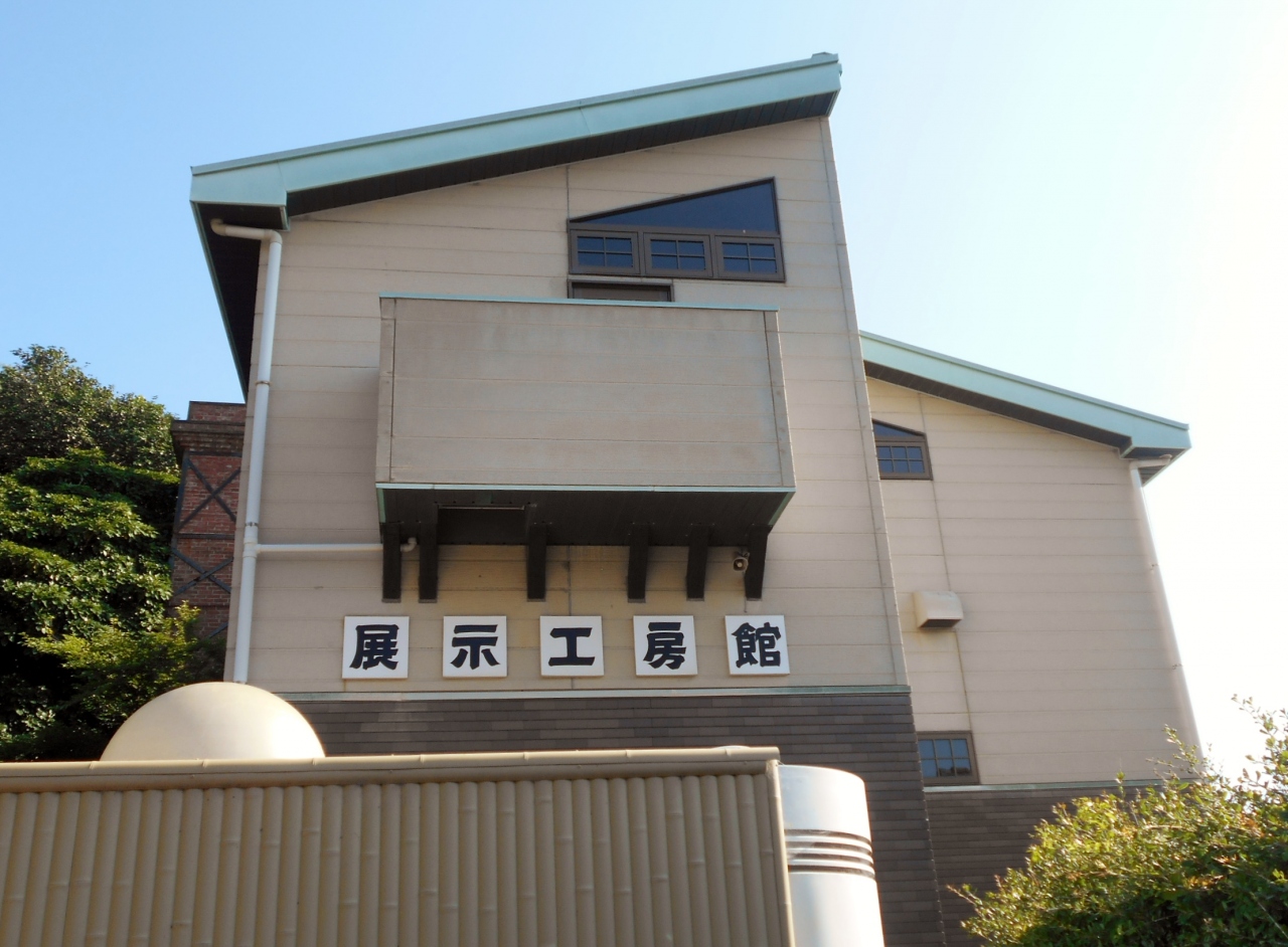 やきもの散歩道の中間地点にある施設で、両面焚倒焔式角窯(りょうめんだきとうえんしきかくがま)が常設展示されています。屋外には記念撮影用の招き猫や煙突があり、隣はオブジェ・水琴窟・陶壁画のある広場になっています。