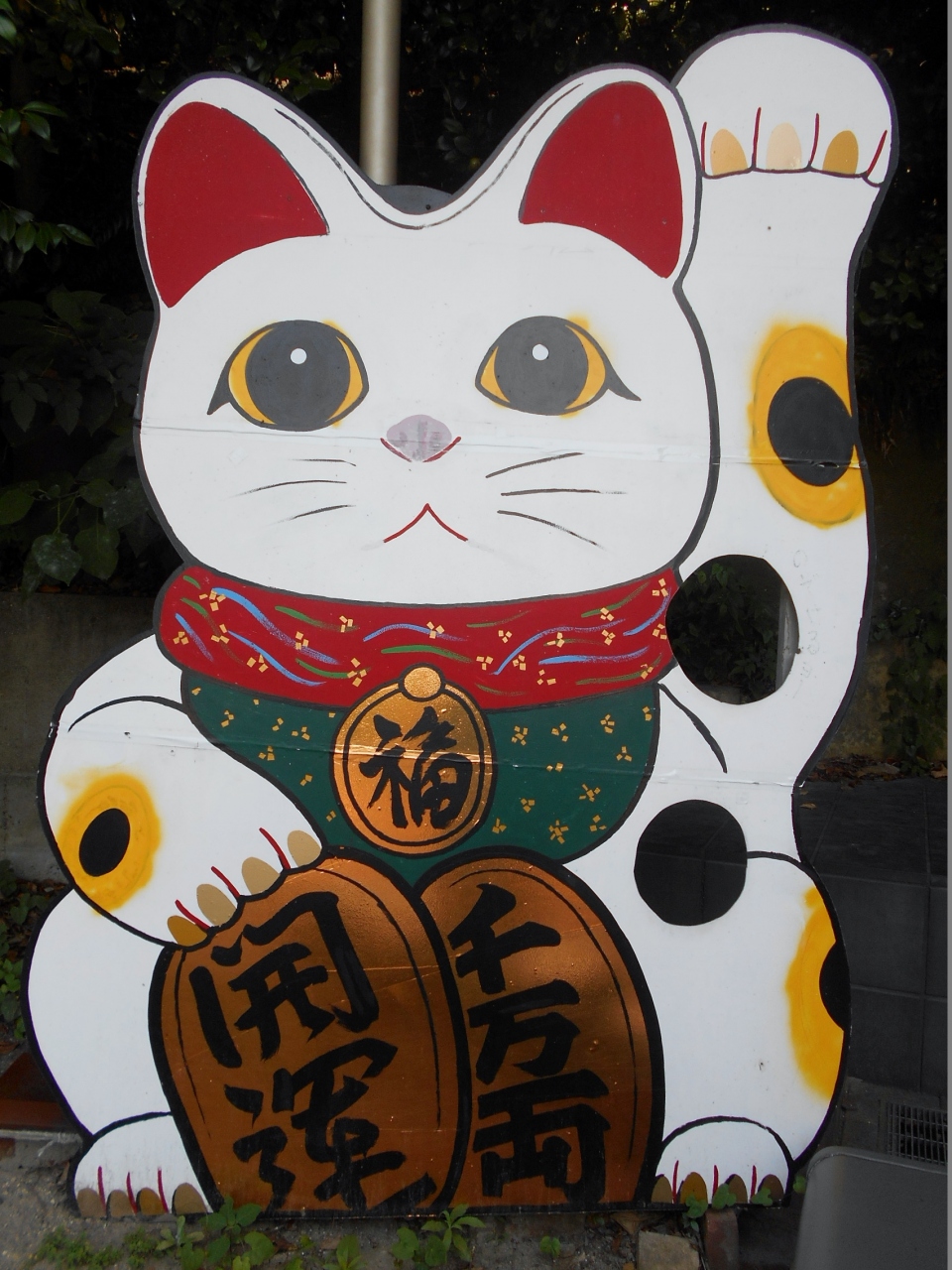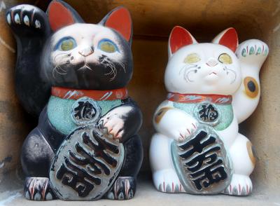 普通の招き猫をはじめ、赤・青・ピンク・紫・緑・黄・金・黒鉄色の招き猫、サッカー招き猫など「すげー」としか言いようがありません。- 旅行時期