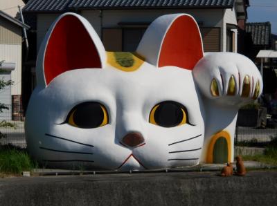常滑やきもの散歩道に散策に出かけたら、絶対見逃してはいけない、というよりも見逃しようのない「巨大招き猫」。