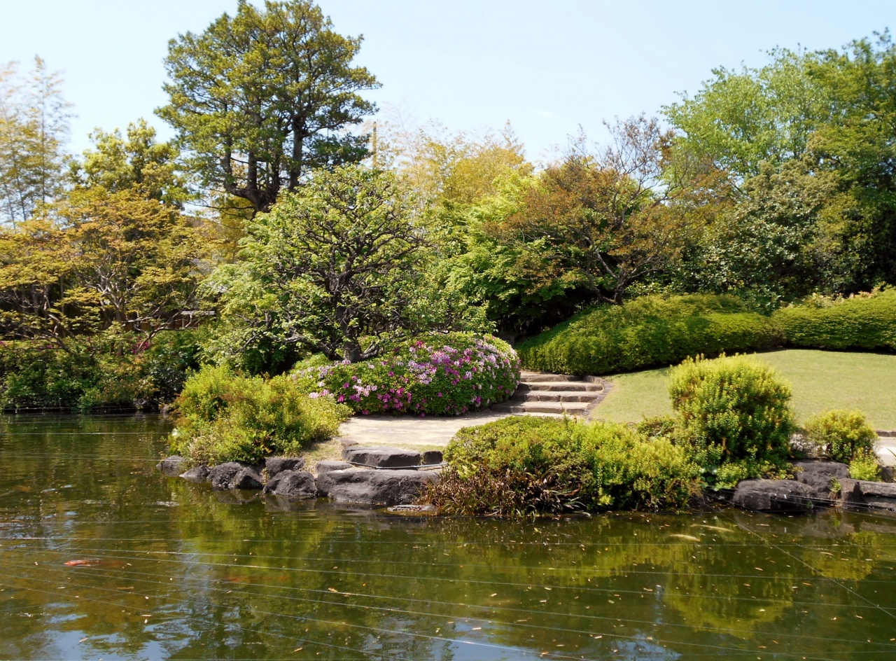 石川丈山生誕の地、安城市和泉町に京都一乗寺にある詩仙堂丈山寺を模して造られています。詩仙閣北側に京田辺市にある酬恩庵一休寺を模した枯山水蓬莱庭園・同南側に詩仙堂を模したツツジのきれいな唐様庭園・同東側に東本願寺渉成園(枳殻邸:きこくてい)を模した回遊式庭園と3つの庭園があり、これで入苑料100円は安過ぎやしないか、と心配になるほど素晴らしい憩いの場です。
