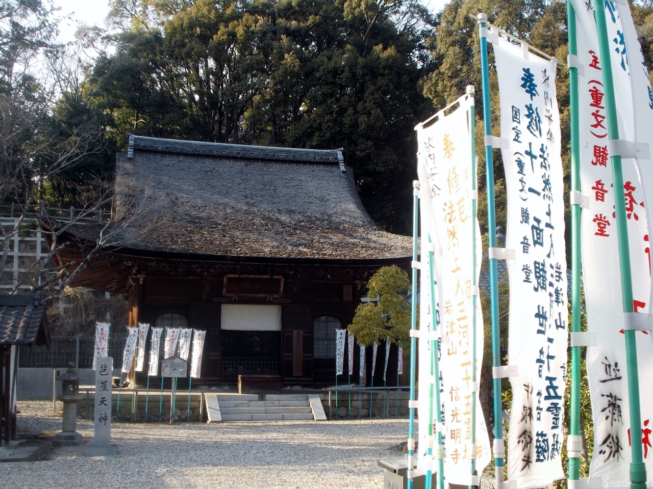 歴史的建築物鑑賞をこよなく愛する者にとっては訪れる価値があるところだと思います。岡崎市内の国指定重要文化財の建築物の大半は矢作川より東に位置していますが、妙源寺の柳堂(太子堂)だけがおそらく西に位置しています。寄棟造檜皮葺、一間向拝付の柳堂は四方からぜひ鑑賞いただきたいです。正面左右各一間と両側面の前二間に蔀戸(しとみど)が吊られています。蔀戸は京都西本願寺の御影堂のものが有名ですね。