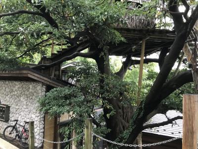 小雨の降る平日、ほぼ開店時刻に一番乗りでおじゃましました。好きな席が選べたので、二階へと。厨房横の梯子のような階段をよじ登ると、そこはロフトのようになっていて、ちゃぶ台とクッションが置かれてありました。平日のお食事メニューは、あんことバターのバゲットサンド、野菜とチキンのバゲットサンド、木の実のスコーン。全部、よいお味でした。本当に木の上に作られたツリーハウスで、まるで秘密基地にいるような楽しい時間が過ごせました。一度は行かれてみると面白いかも。ちなみに、現金のみのお取り扱いです。