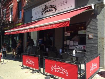 グリマルディの創業者パツィ・グリマルディが新しく開いたピザ店ジュリアナズもお勧めです。グリマルディのすぐ隣りにあり、行列も同じぐらいの人気店です。スモール・サイズのピザが18ドルぐらいで、テイクアウトもできます。本格的な炭焼きのピザとあって、さすがに美味しいです。晴れた日にはベンチや芝生に座って、橋とマンハッタンを眺めながらピクニック気分というのも、なかなかオツなものではないでしょうか。