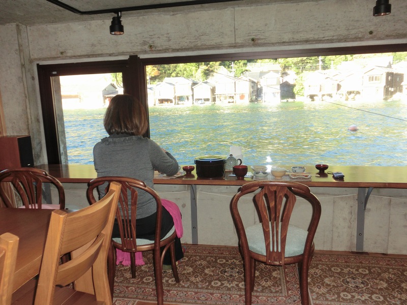 食事処は落ち着いた洒落た雰囲気があり海に面した一枚ガラスから対岸の舟屋が見え、写真を見ているごときである。