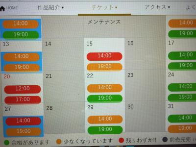 完売している日が多く、HPの公演日程カレンダーの確認を注意して下さい。