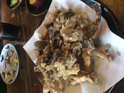 別注山菜天ぷらは、キノコ3種盛りにタンポポや何か知らない野草が出てきました。