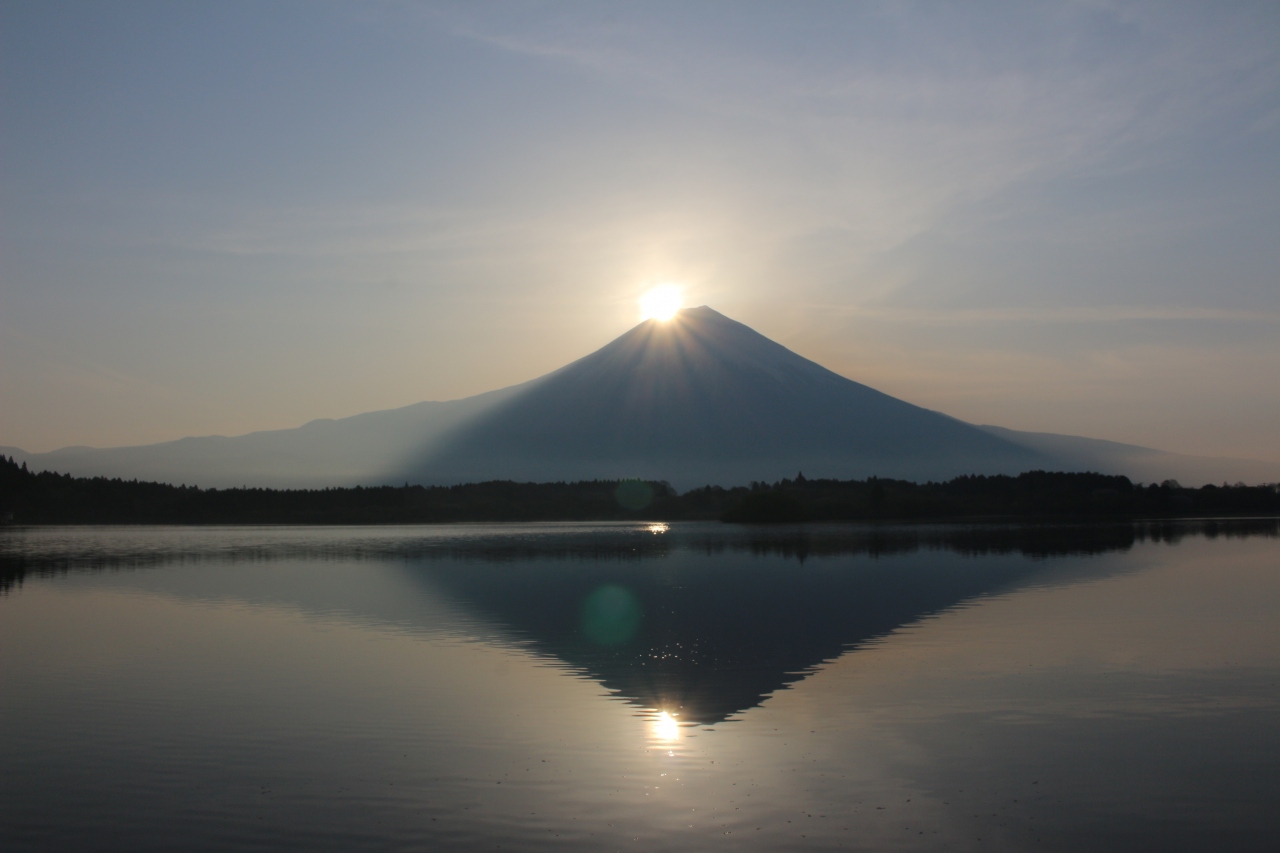 後日、山中湖越しで、ダイヤモンド富士を見たのですが、山中湖越しの場合、ずっと太陽を見ていることになり、正直かなりまぶしいです。オートフォーカスのピントが合わずシャッターきれないことが多かったです。