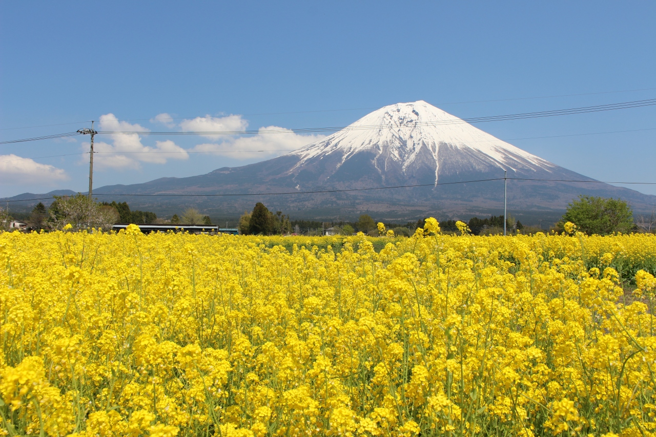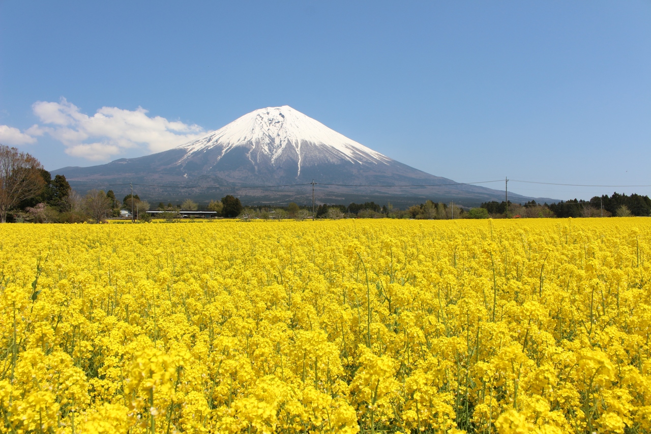 人穴地区〜富士山をバックに広大な菜の花が広がっています