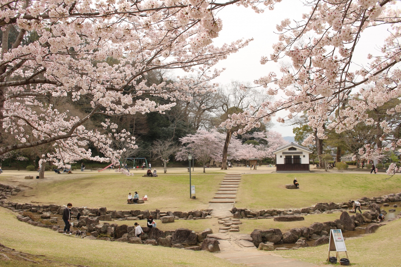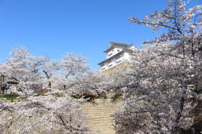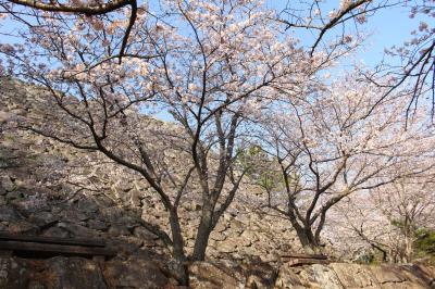 ちょうど桜が満開で城壁の残る城跡に桜が随所にあってすばらしい景色でした。高台にあるので周囲の展望もよく大山もよく見えました。- 旅行時期